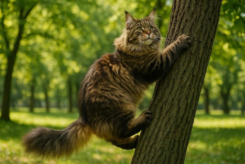 These cats love spending time outdoors, exploring every corner of the garden or park. Imagine a Maine Coon gently pawing at fallen leaves, chasing butterflies fluttering in the air, and climbing sturdy trees with ease—all while looking irresistibly cute and agile.