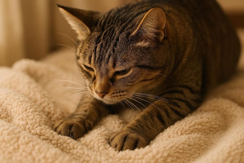 Kneading soft surfaces mimics kitten nursing behavior. This soothing action shows your cat feels content, safe, and relaxed.